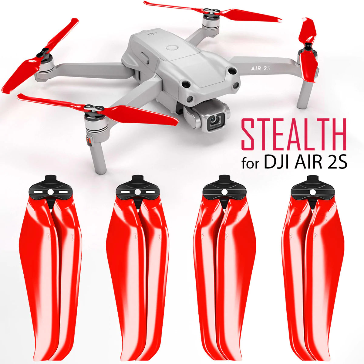 It's all about efficiency. Our team has more than 40 years of experience designing and manufacturing propellers for Model Airplanes and Drones. We have designed the DJI Air 2S STEALTH propellers carefully selecting the perfect airfoils and propeller geometry for this drone. As a result, the Stealth propellers have better efficiency and drain less power during flight allowing additional about 4% (up to 1.3min) of flight time per battery.