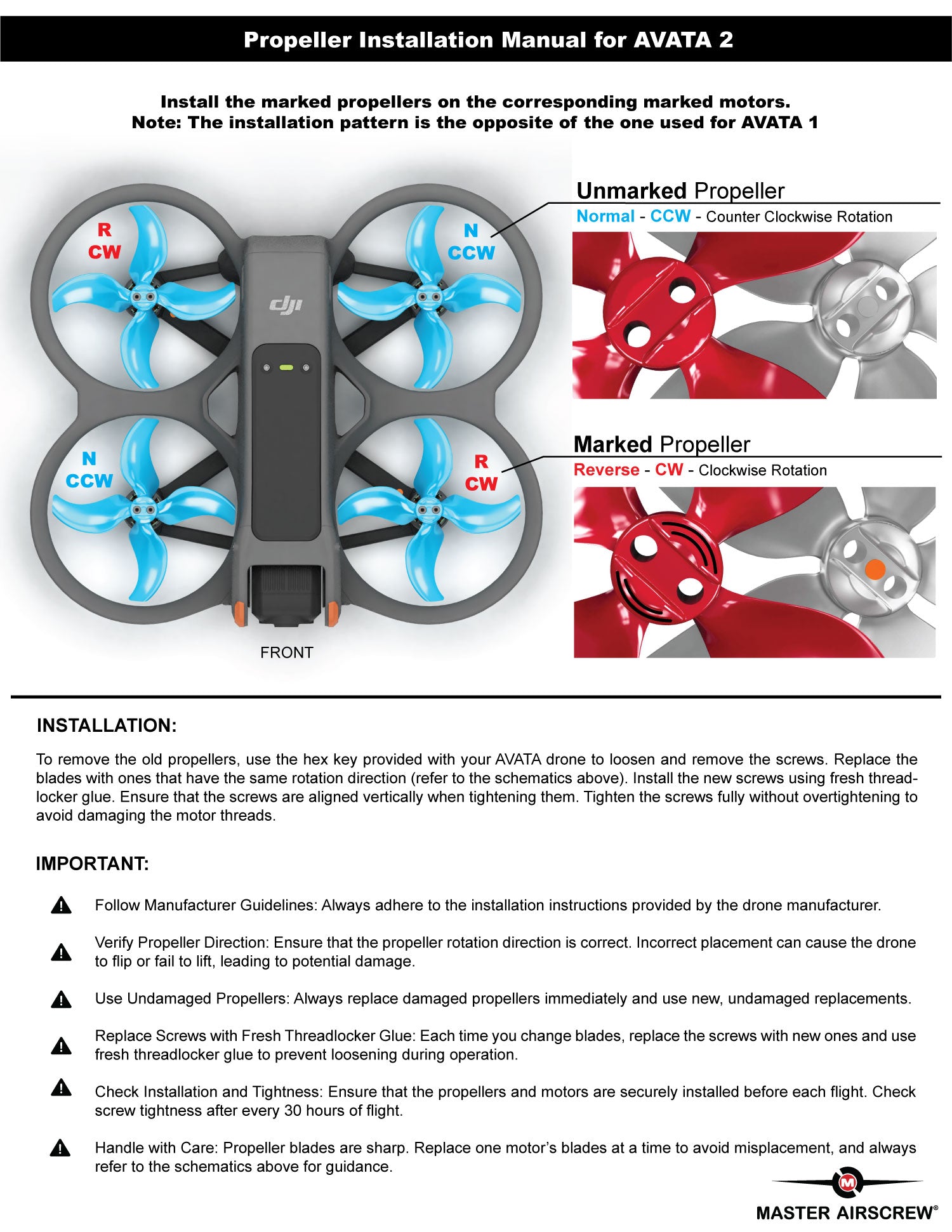 - x4 Avata 2 propellers (x2 CW and x2 CCW)